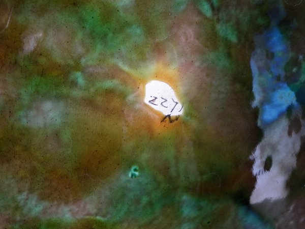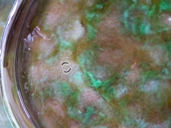 KILN EFFECTS: a few specks of kiln detritus caught in the glaze to the interior.