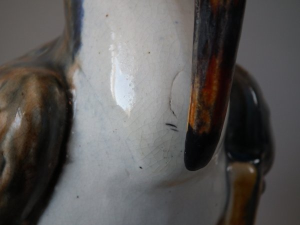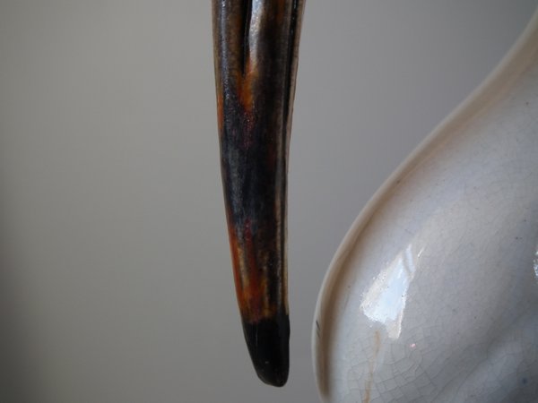 CONDITION: Good. KILN EFFECTS: shrinkage line to the inside and back of stork's neck;
