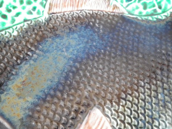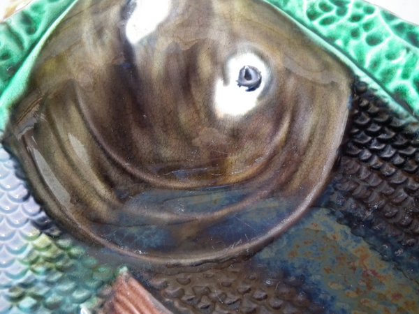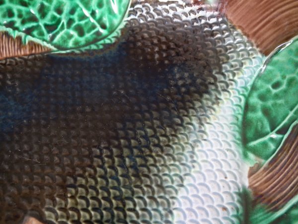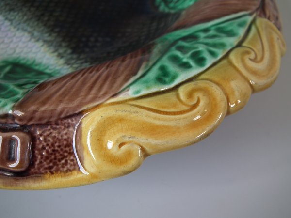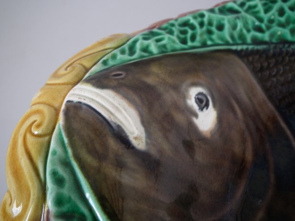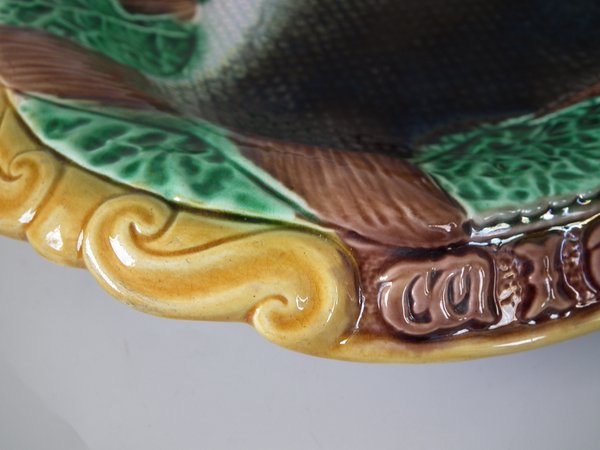 Victorian, circa 1870. 11ins high, 12.8ins wide, 2.2ins depth. Majolica bread platter