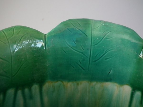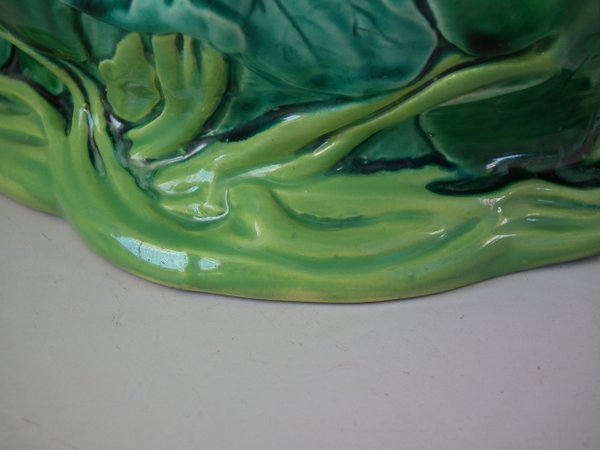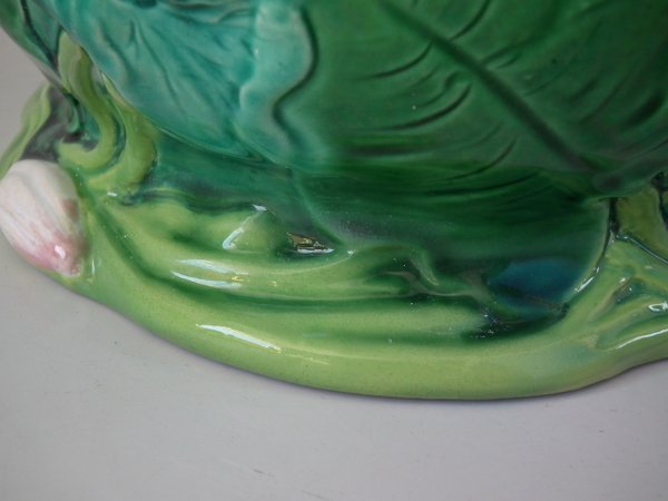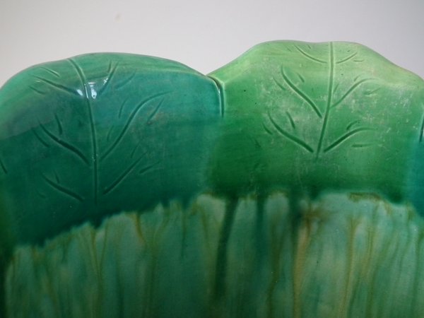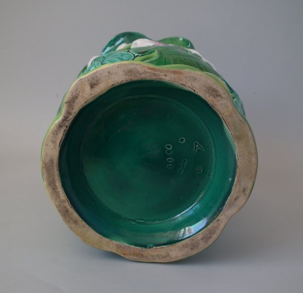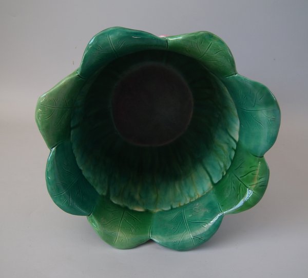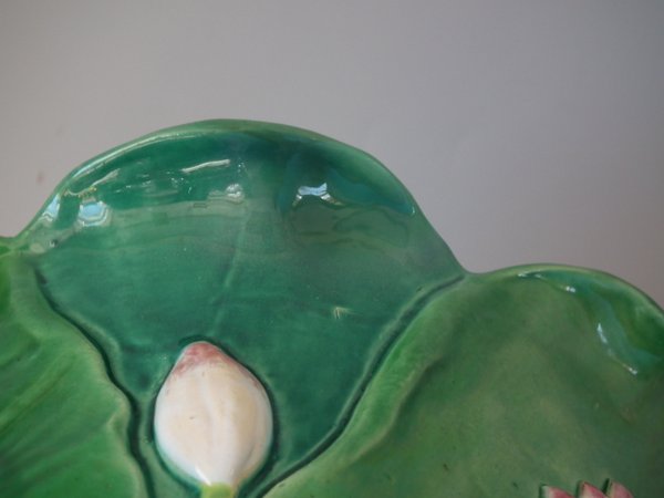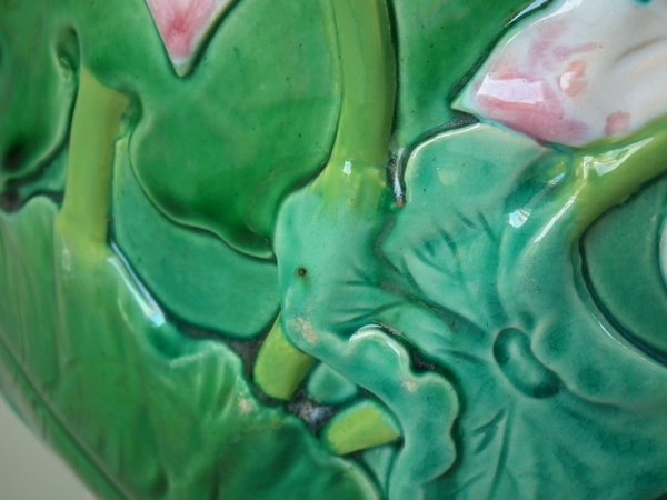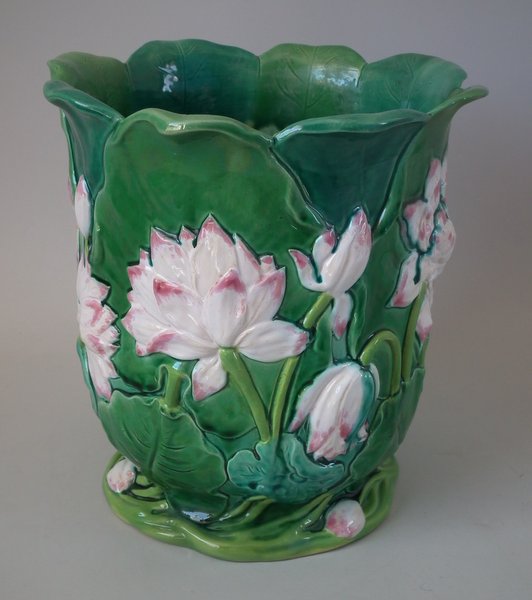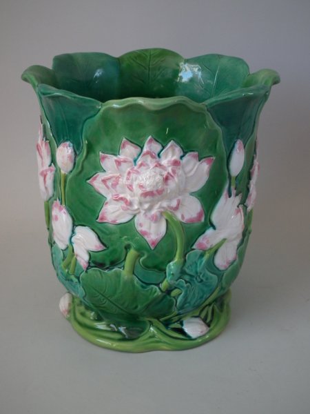 Minton Majolica jardinière which features water lilies and lily pads.