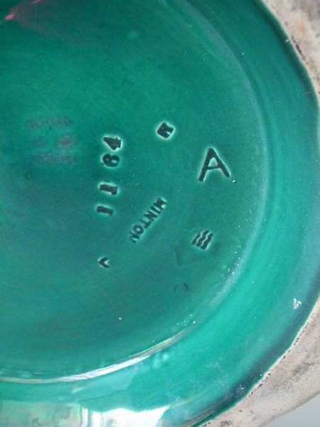 The piece bears maker's marks for the Minton pottery. Bears a pattern number, '1164'. Marks include a factory specific date cipher for the year 1865.