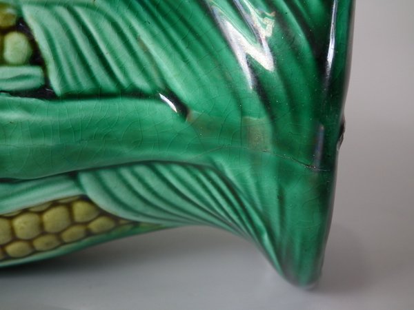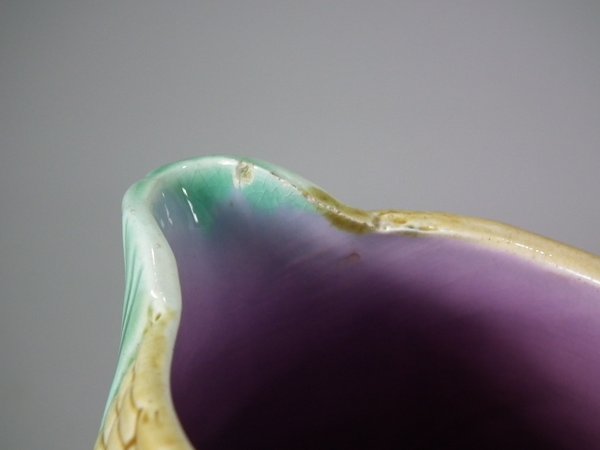 Good. No restoration. Small flake to rim and edge of one leaf.