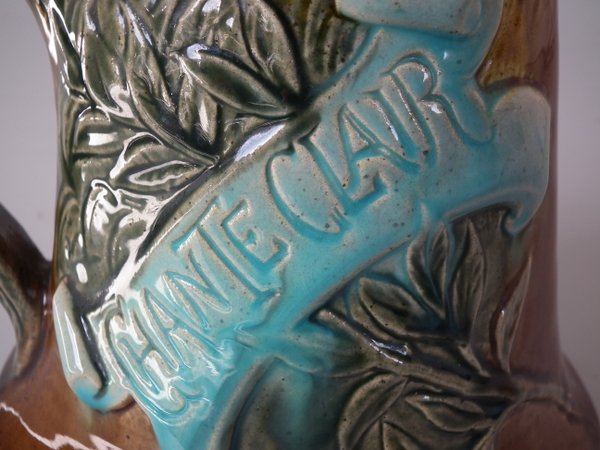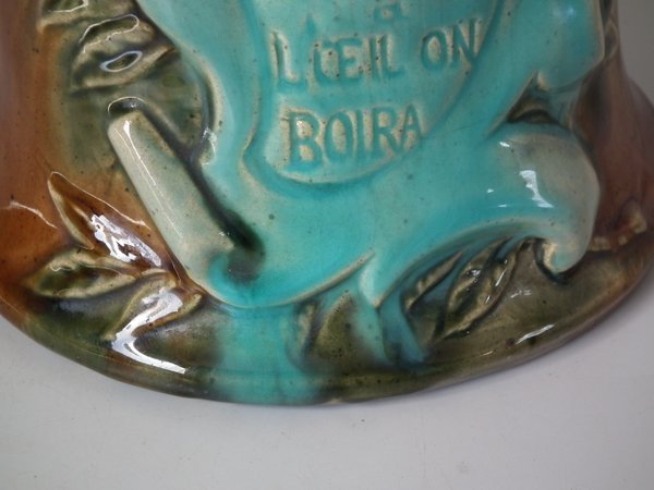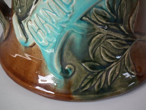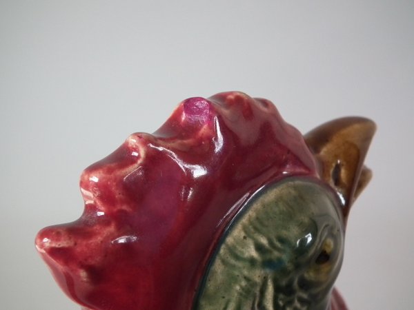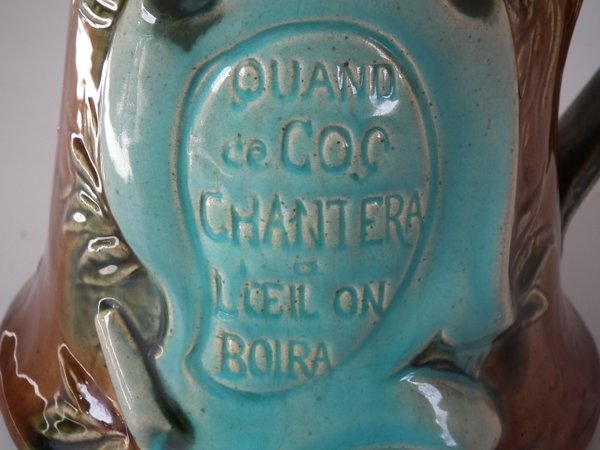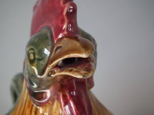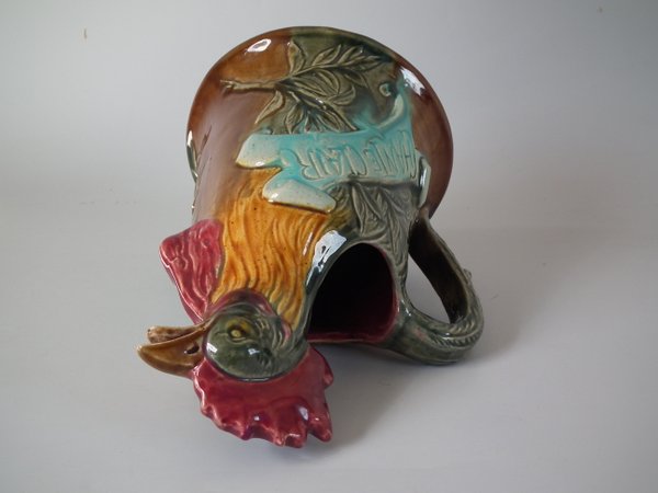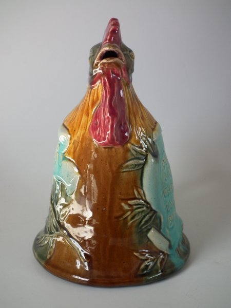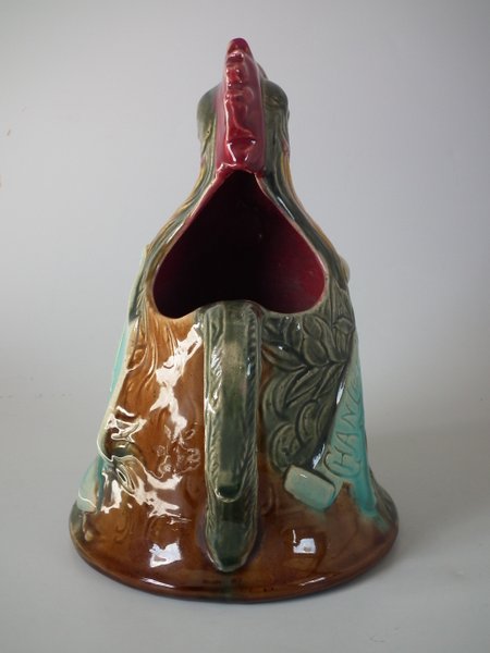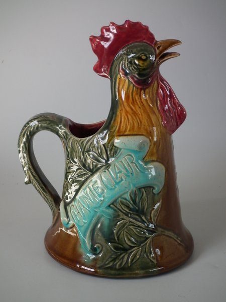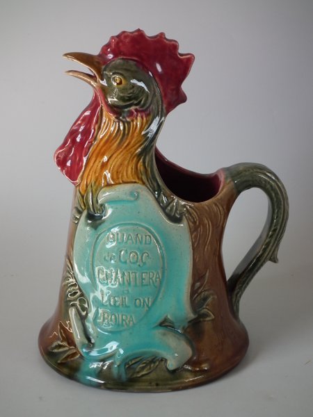 Victorian, circa 1900. 9.3ins high, 6.7ins wide, 6ins depth. Desvres Majolica jug/pitcher which features a cockerel