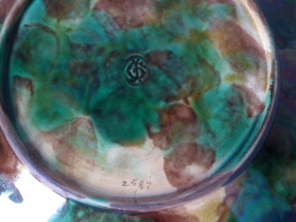 The piece bears maker's marks for the George Jones pottery. Bears a pattern number, '2587'.