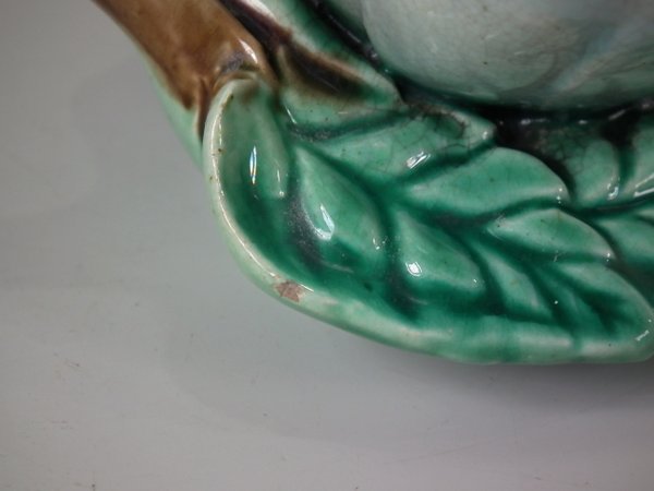 Good. No restoration. Tiny chip to rose petal and one to leaf edge.