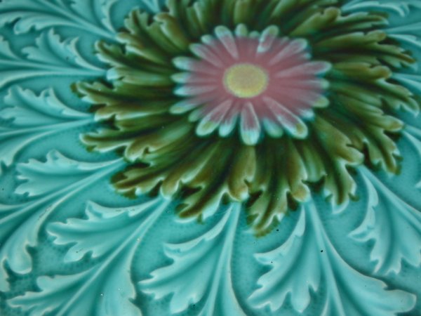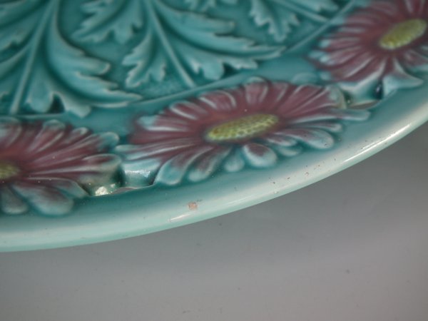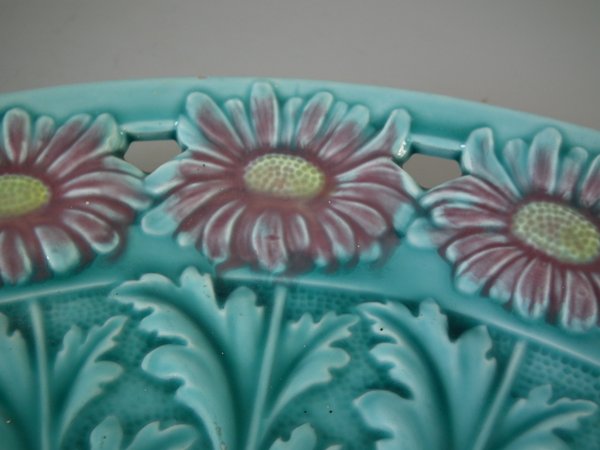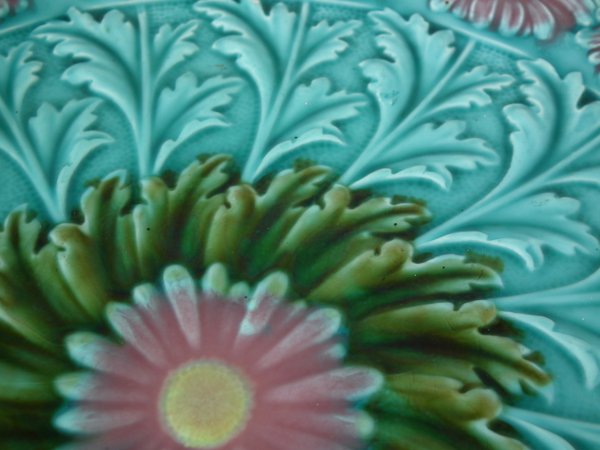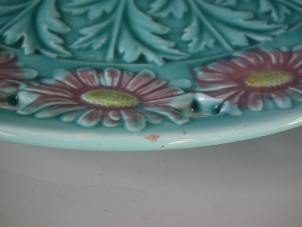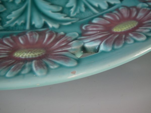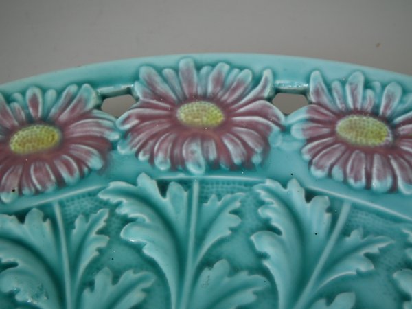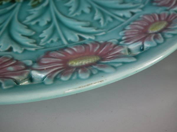 Victorian, circa 1900. 11.6ins high, 11.6ins wide, 1.2ins depth. Villeroy & Boch Majolica plate which features daisies.