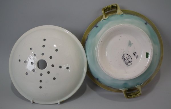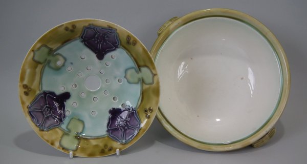 Mintons Secessionist No.9 twin handled sponge dish with removable drainer.