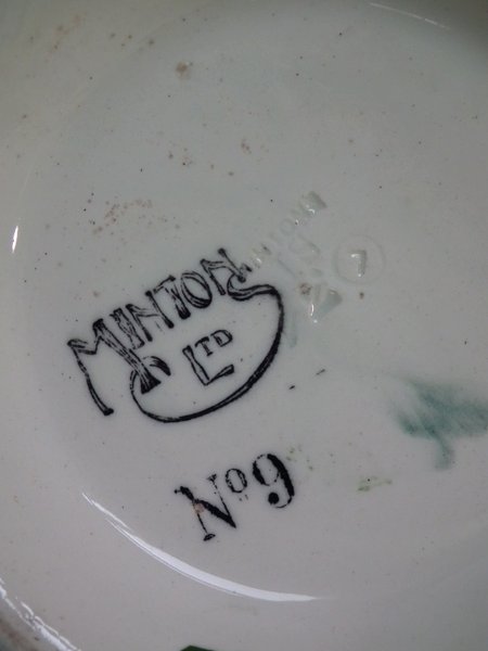 Maker's marks including printed 'MINTONS LTD. NO. 9' and impressed date cipher for 1907.