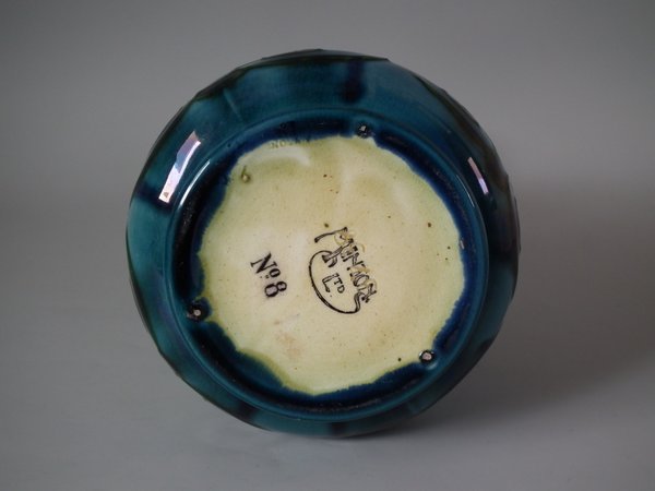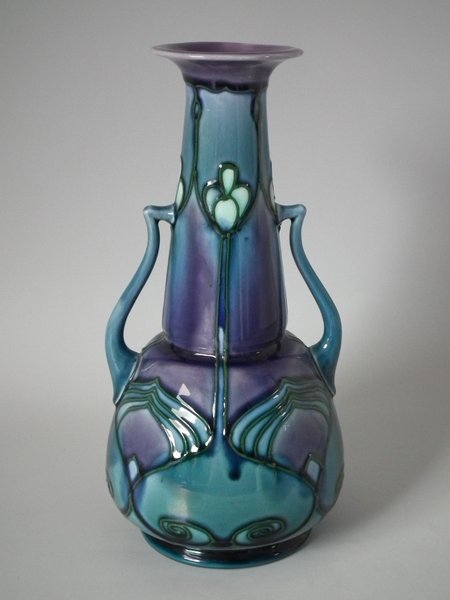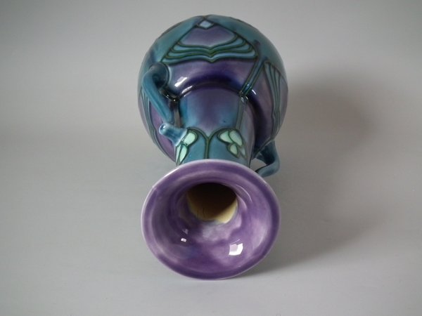 Circa 1910. 9.5ins high. Minton Secessionist two handled vase with bulbous lower half, tapered neck and flared rim.