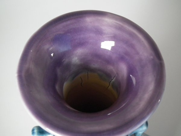 KILN EFFECTS: shrinkage cracks to neck on inside.