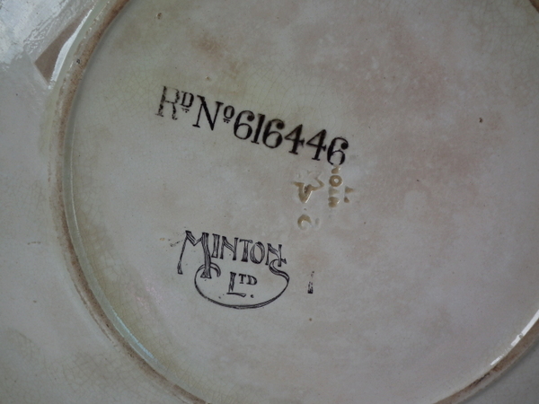 Maker's marks including printed, 'MINTONS LTD. 1' and 'RD. NO. 616446', and impressed 'MINTON' and date cipher for 1914.