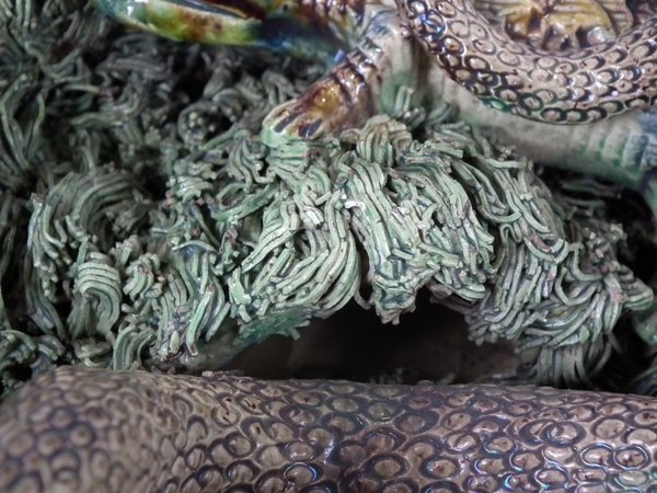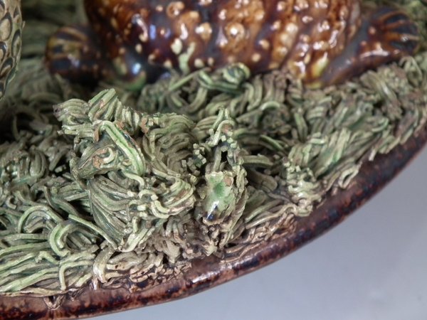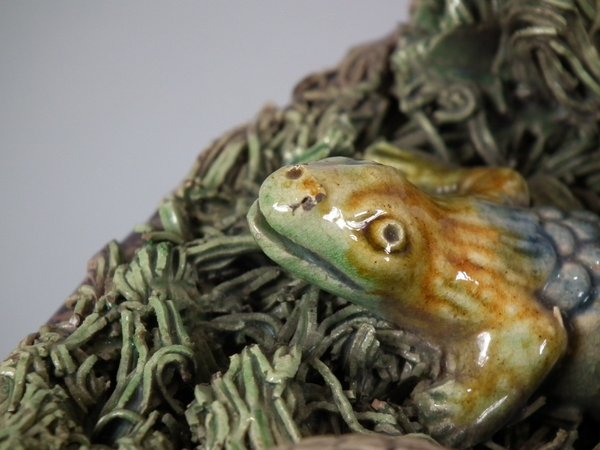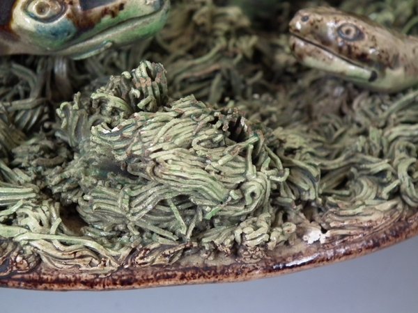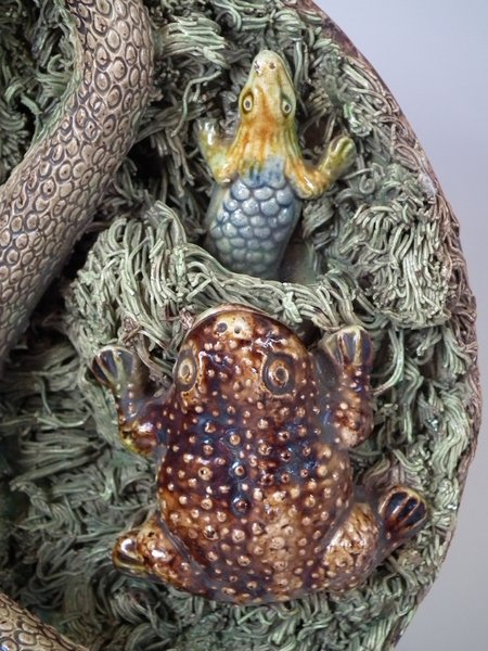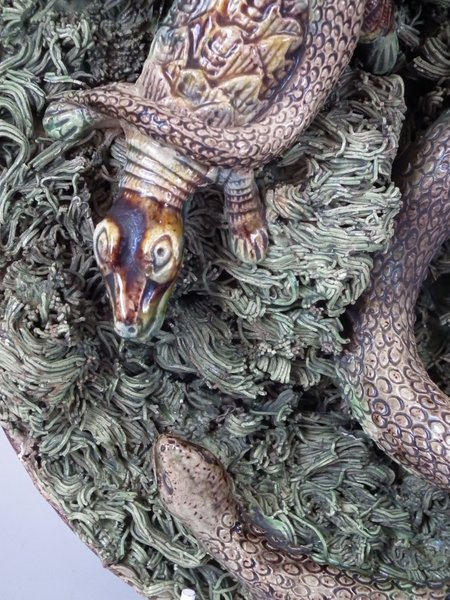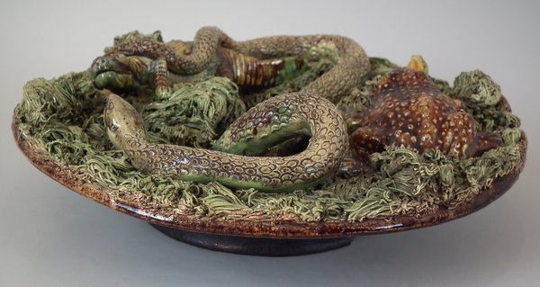 Mafra Portuguese Palissy Majolica wall plate which features a toad, snake, lizard and a gecko.