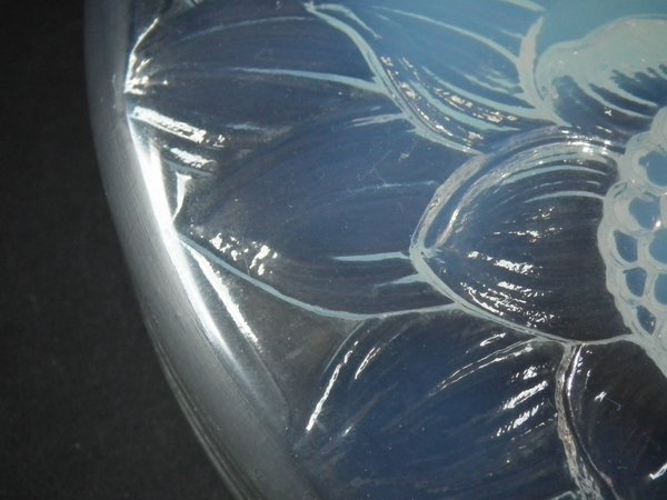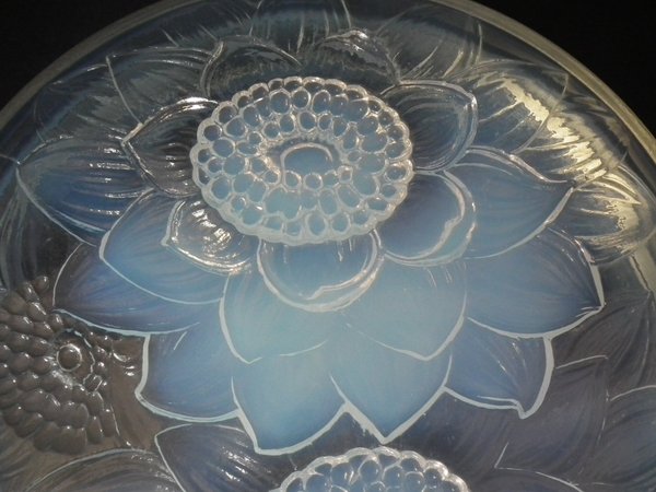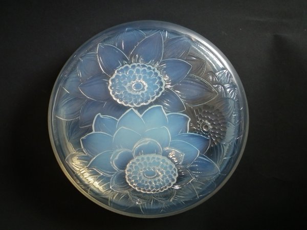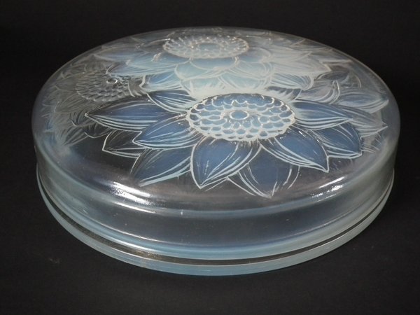 Introduced in 1922. Height: 6cm (2.36ins). Width: 21cm (8.27ins). Depth: 21cm (8.27ins).. Rene Lalique Opalescent Glass 'Trois Dahlias' Box.