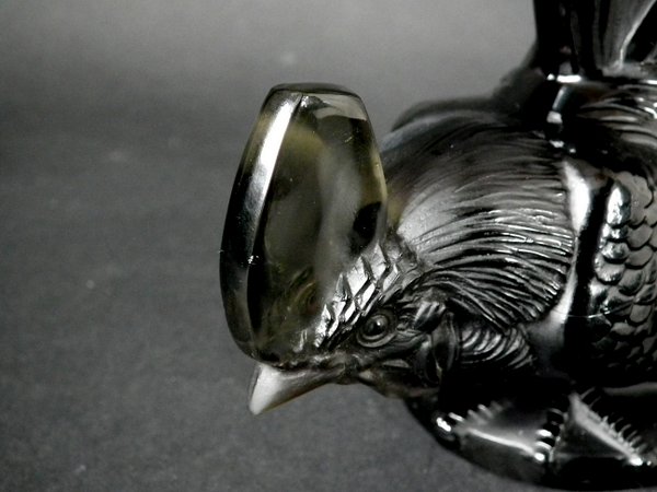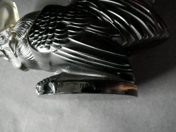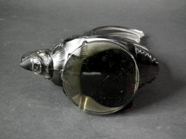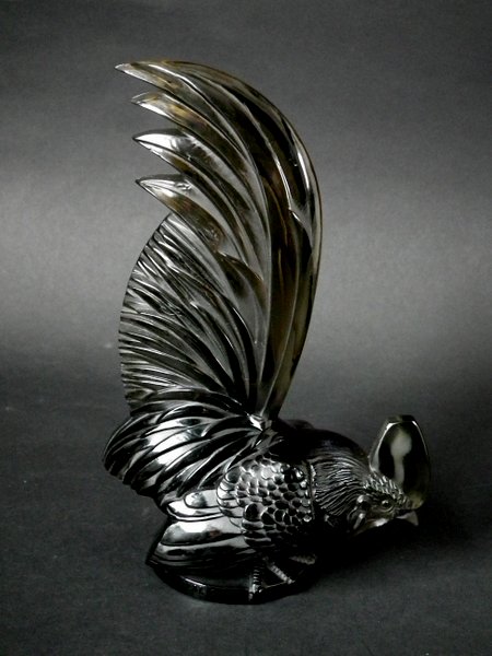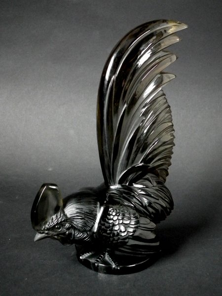 Introduced in 1928. Height: 20cm (7.87ins). Width: 13cm (5.12ins). Depth: 7cm (2.76ins).. Rene Lalique Topaz Glass, 'Coq Nain', Cockerel, Car Mascot.
