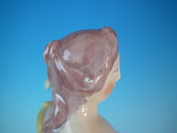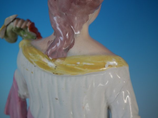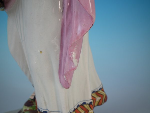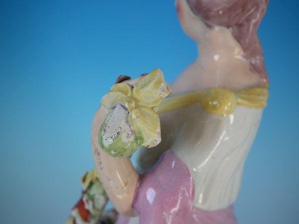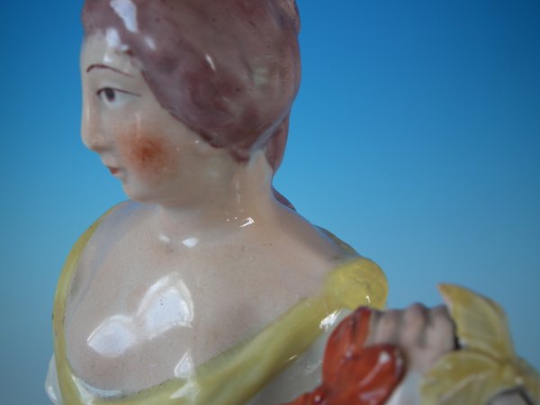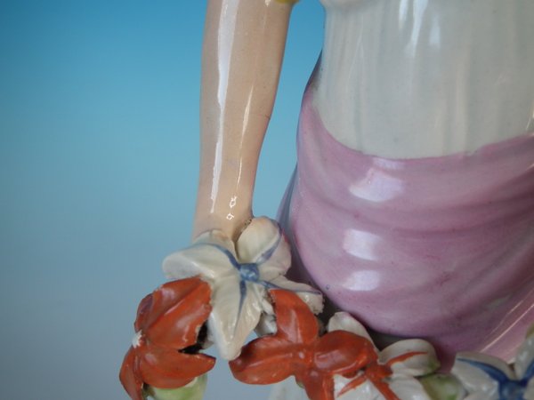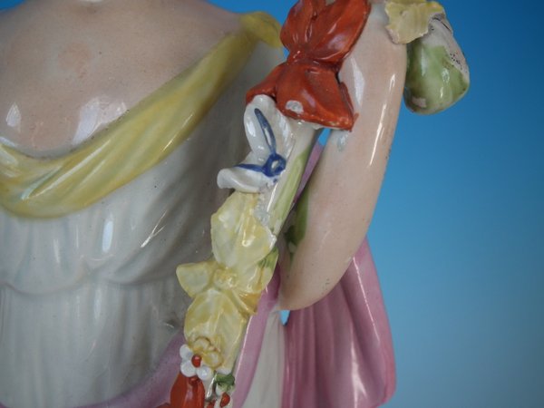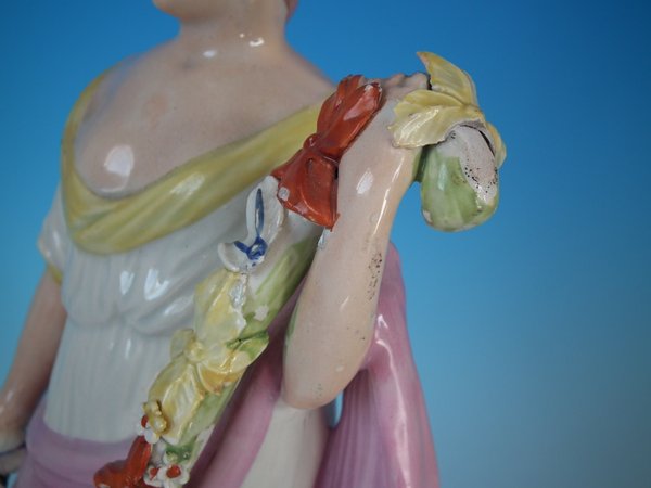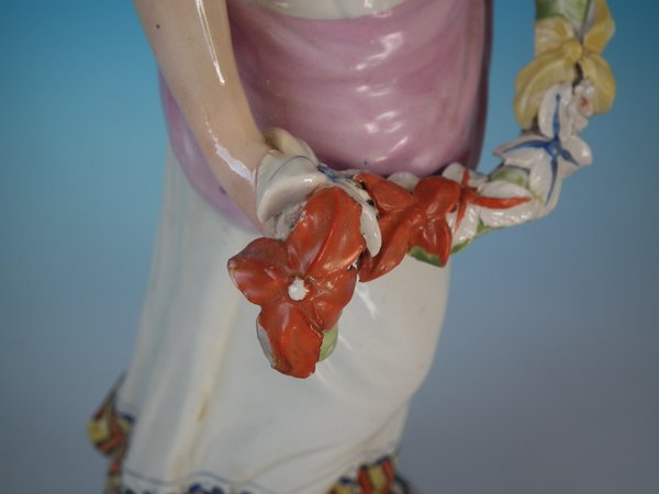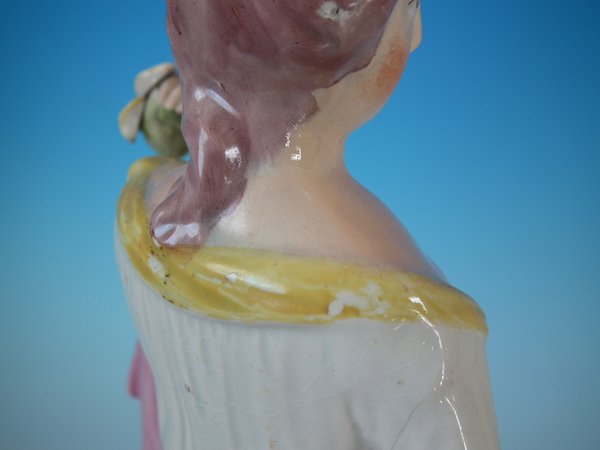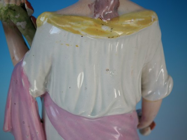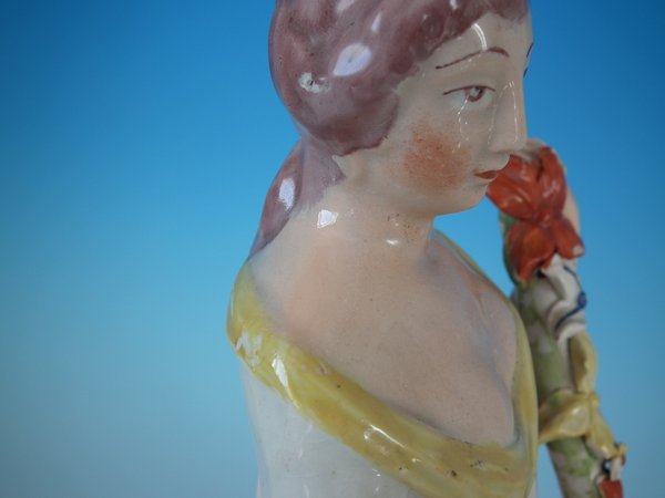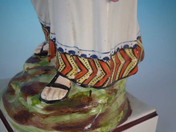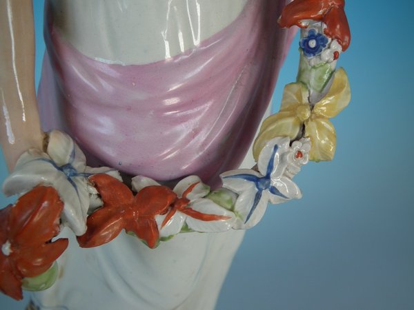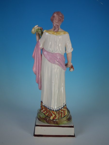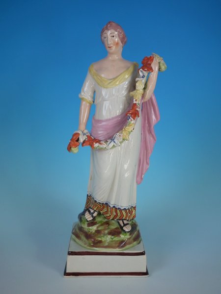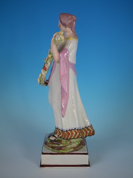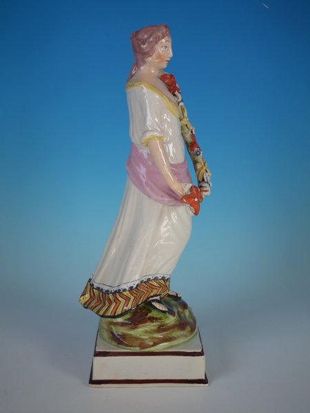 Staffordshire Pottery pearlware figure which features Flora holding a garland of flowers, stood on a square base.
