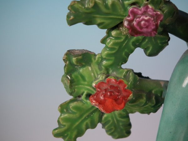 one flower absent on bocage tree, but overglazed indicating original manufacturing effect.