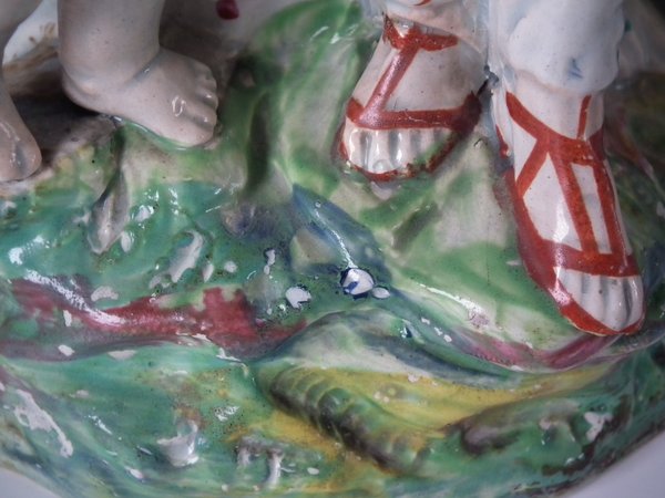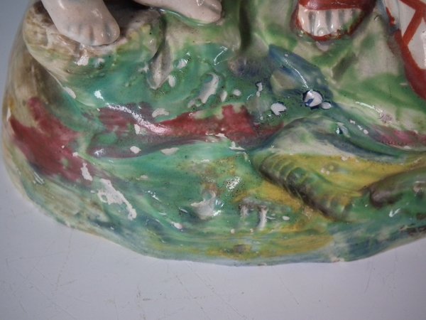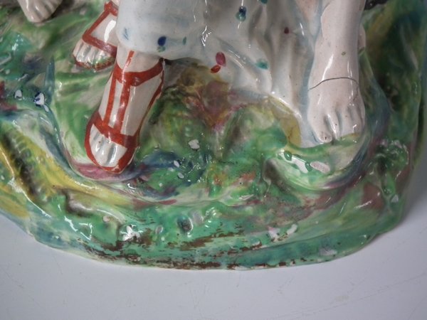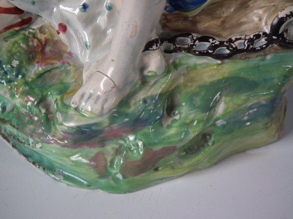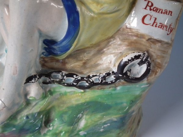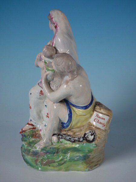 pre-Victorian, circa 1820. 7.9ins high, 5.1ins wide, 4.3ins depth. Staffordshire Pottery pearlware group with a classical theme which features Pero,