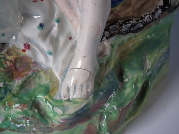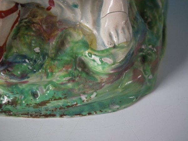 Small chip to Pero's sandal, not noticeable when the piece is upright.