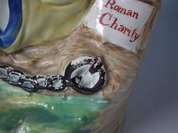This piece represents the 'Roman Charity' story of a woman Pero, who secretly breastfeeds her father Cimon,