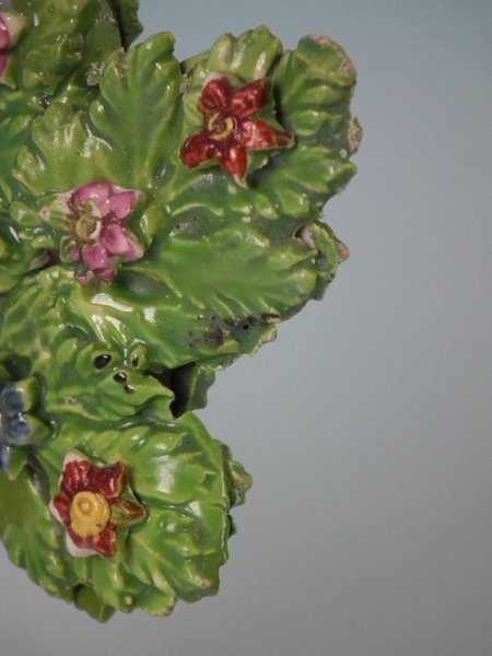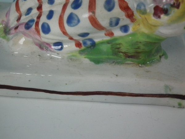 Flake to underside base edge and a few tiny flakes to bocage leaves.