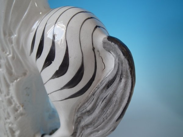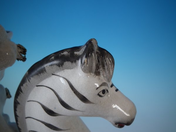 RESTORATION: Stabilised and retouched crack to zebra's left hind leg.