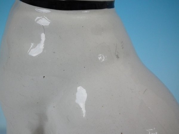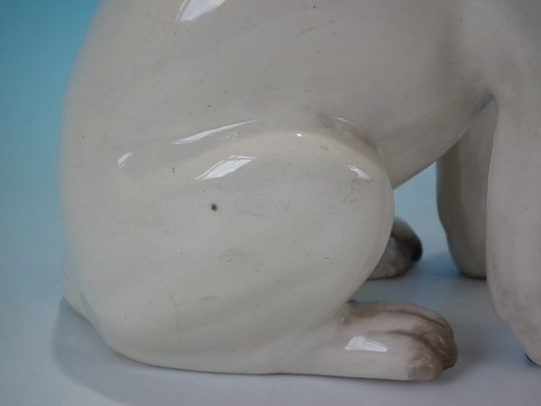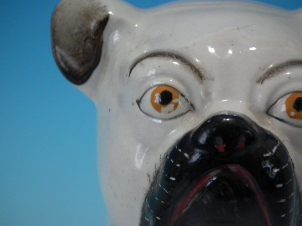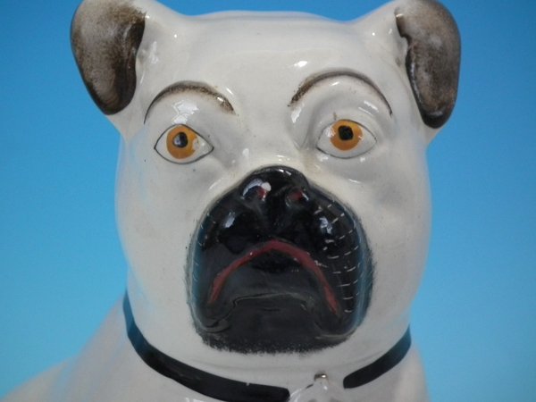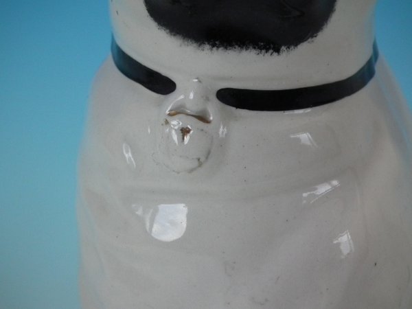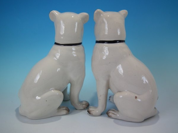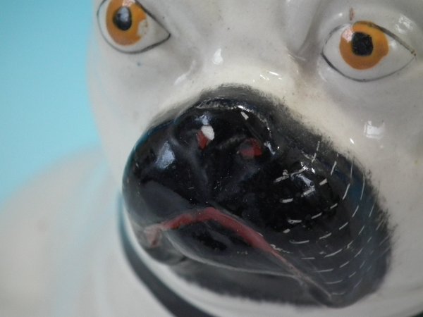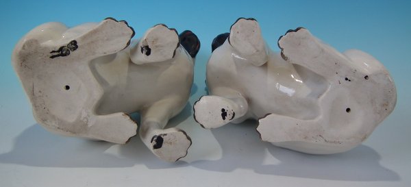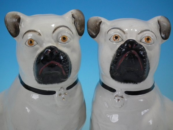 Pair of Staffordshire Pottery figures which feature a pug, seated directly on the ground, no base.