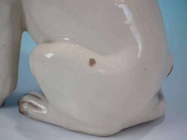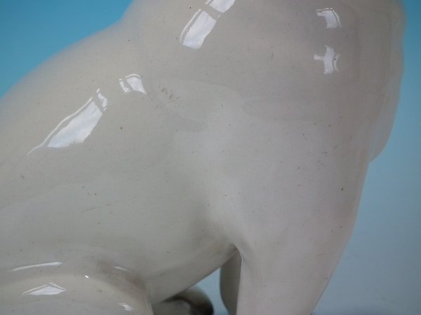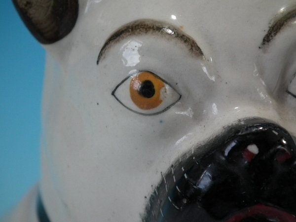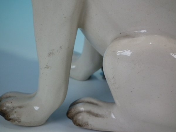 Right facing: Good. No restoration. Paint losses to muzzle and right eye.