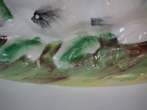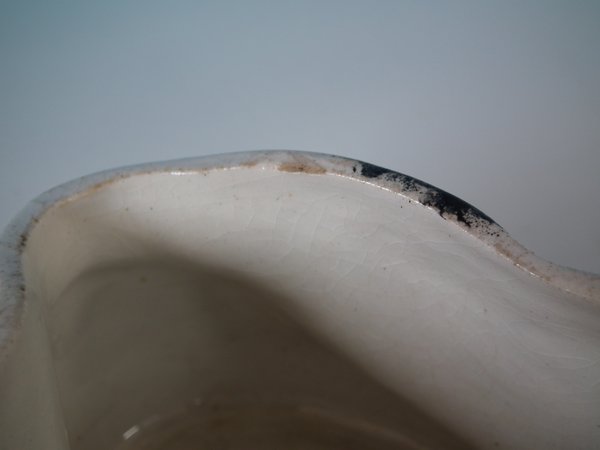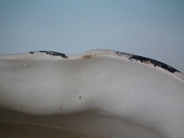 A few small flakes and nicks to inner rim.