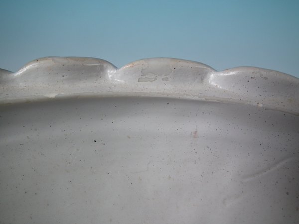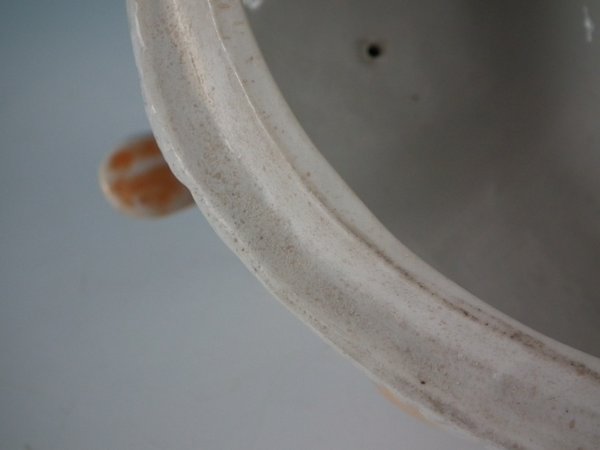 RESTORATION. Retouching to inner rim and interior on the sides. No restoration on outside surfaces.