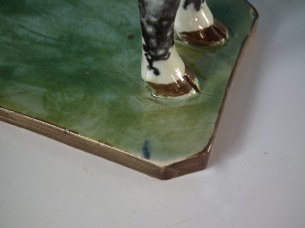 KILN EFFECTS: flecks of stray coloured glaze to the upper base.
