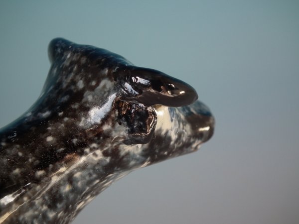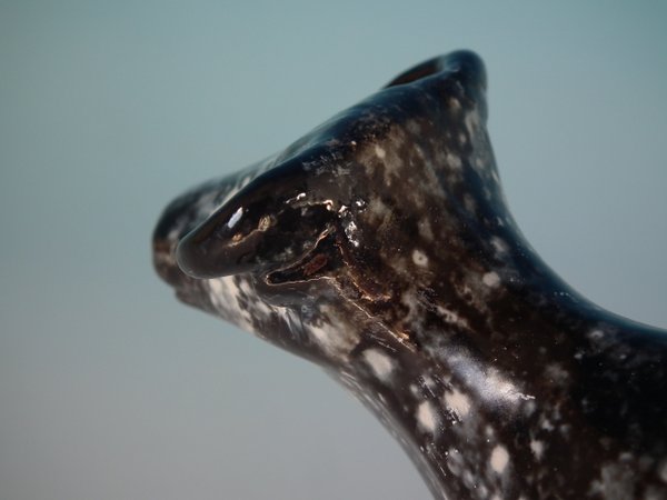 Hole with cover to cow's back. Mouth forms a pouring hole.