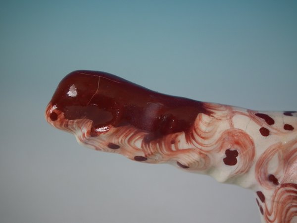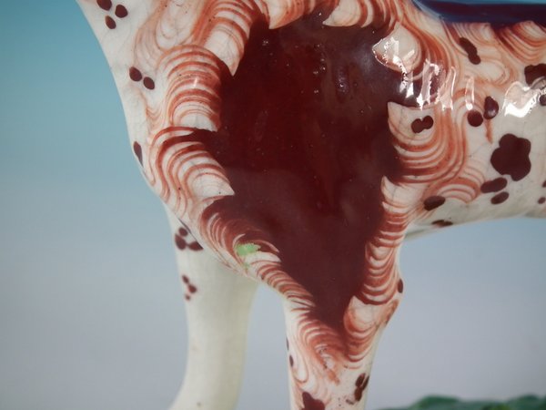 KILN EFFECTS: a few flecks of stray coloured glaze to the dog;