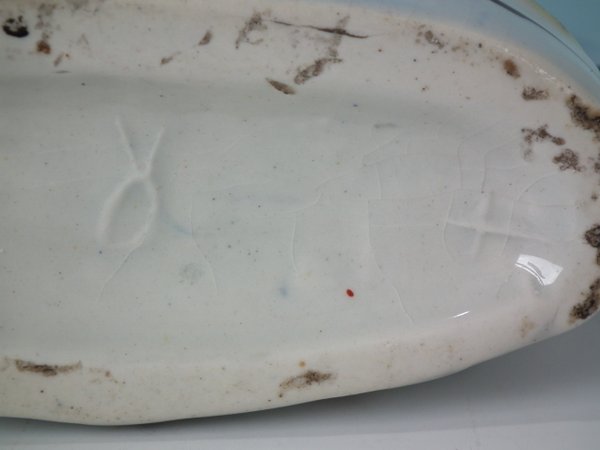 specks of kiln grit and some stray coloured glaze to reverse.