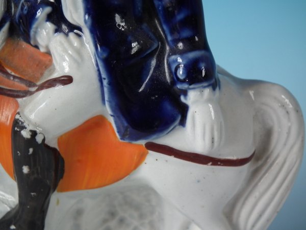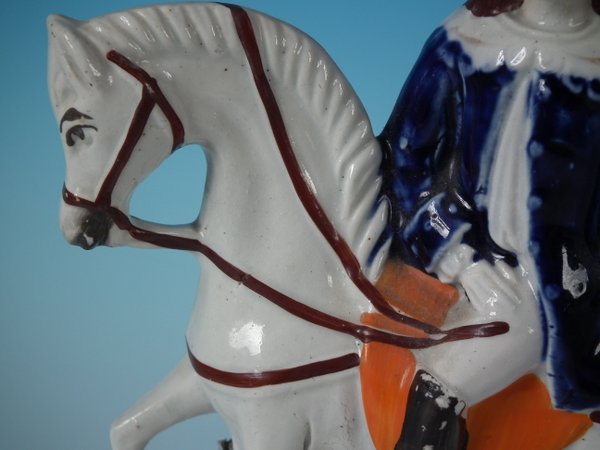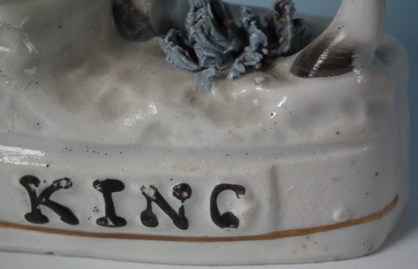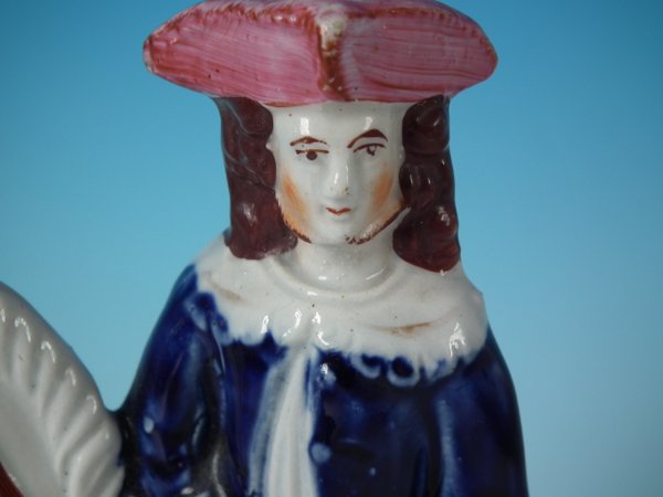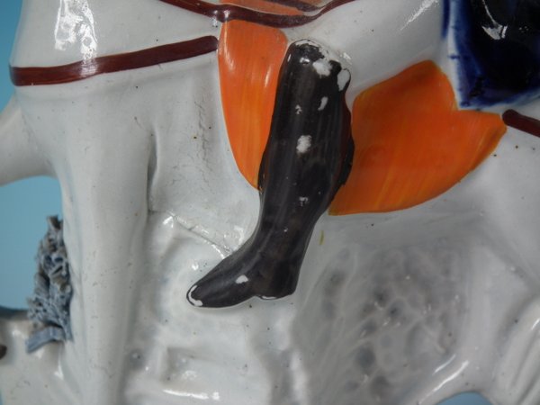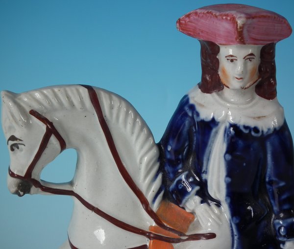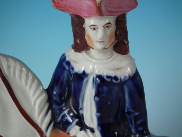 This piece represents Tom King who was part of an infamous highwaymen partnership with Dick Turpin. In 1735 Turpin accidentally shot and killed King. Their story was later dramatized on many occasions. Book reference ,'Victorian Staffordshire Figures 1835-1875' Book 1, by A.& N. Harding, page 264, figure 943.