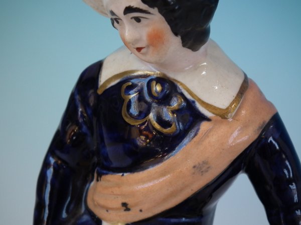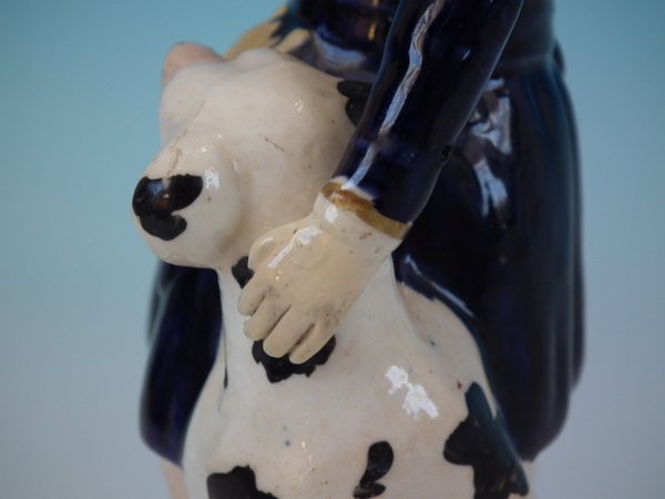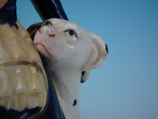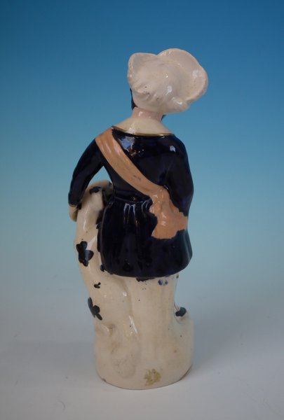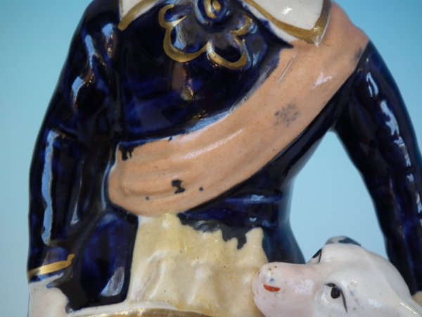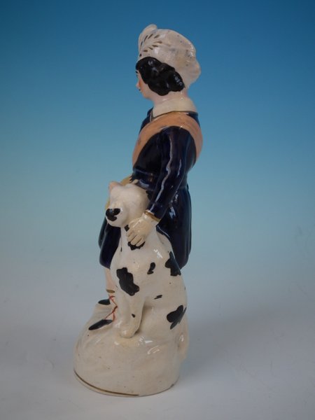 Staffordshire Pottery figure with a childhood theme which features a child with dog, stood on a circular base.