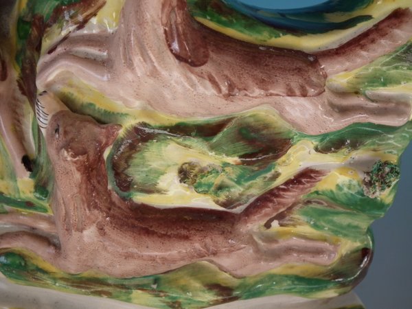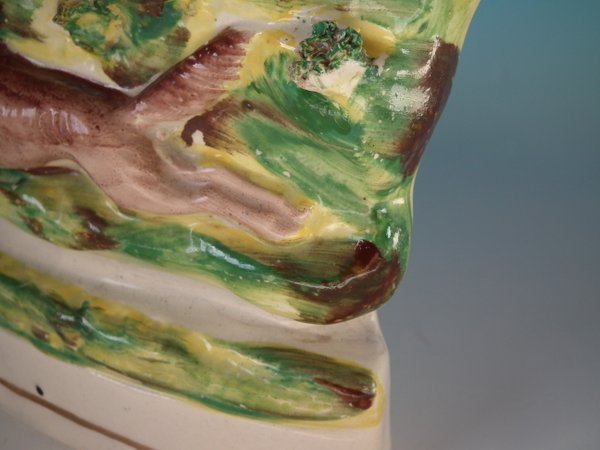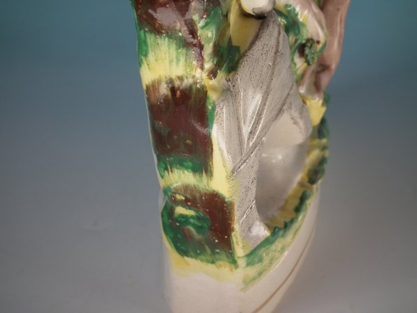 Victorian, circa 1860. 13.6ins high, 10.2ins wide, 3ins depth. Staffordshire Pottery spill vase with a theatrical and literary theme