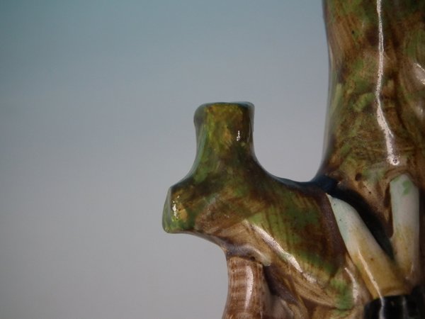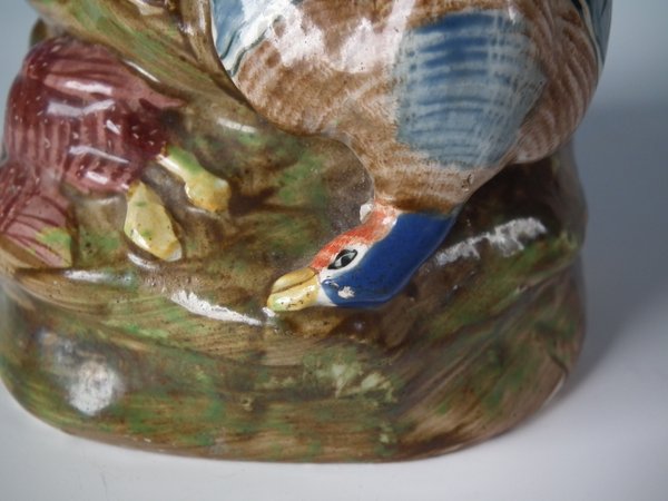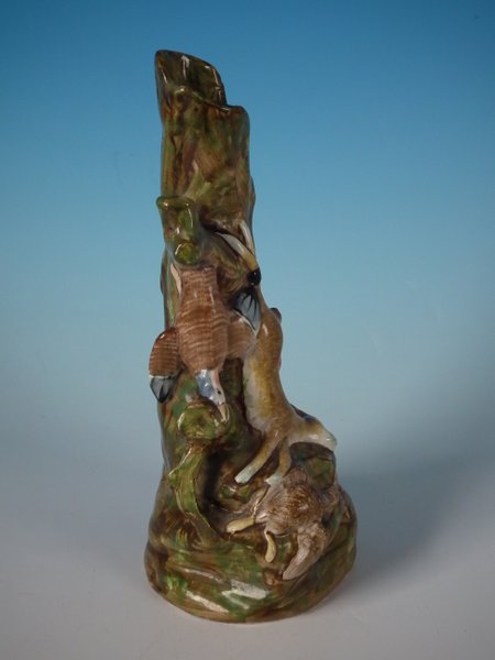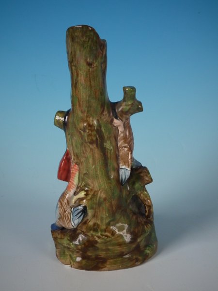 pre-Victorian, circa 1820. 7.5ins high, 3.5ins wide, 3.1ins depth. Staffordshire Pottery pearlware spill vase which features a variety of game, resting on a shaped base.