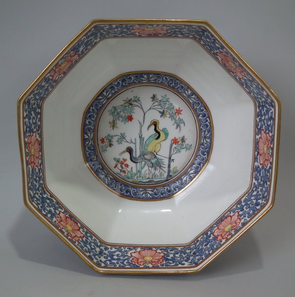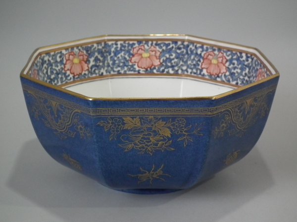 Wedgwood Lustre Octagonal Bowl decorated with wading birds to interior, various insects to exterior.