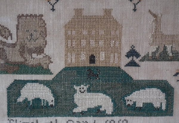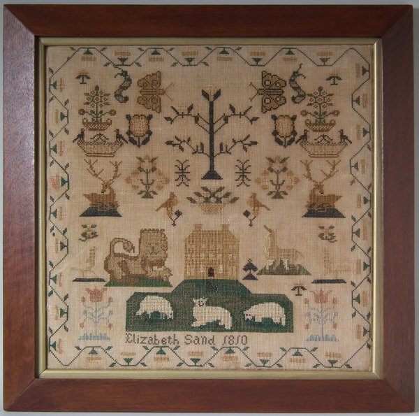 George III, dated 1810. 16ins by 16.25ins wide. 1810 Sampler by Elizabeth Sand.
