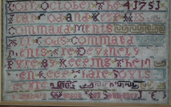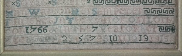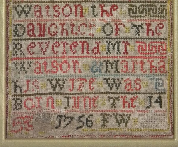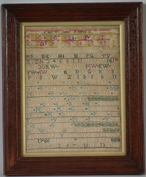 Signed 'Ann Watson Her sampeLer Finisheb In The Year oF our Lord Gob 1766 & In The 7 Year oF her Age'.