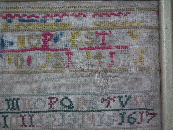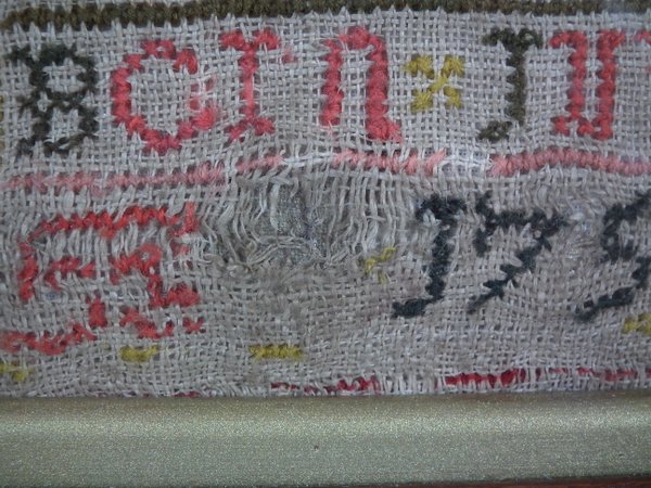 Unnamed sampler: Good. No holes. A few patchy stains.
