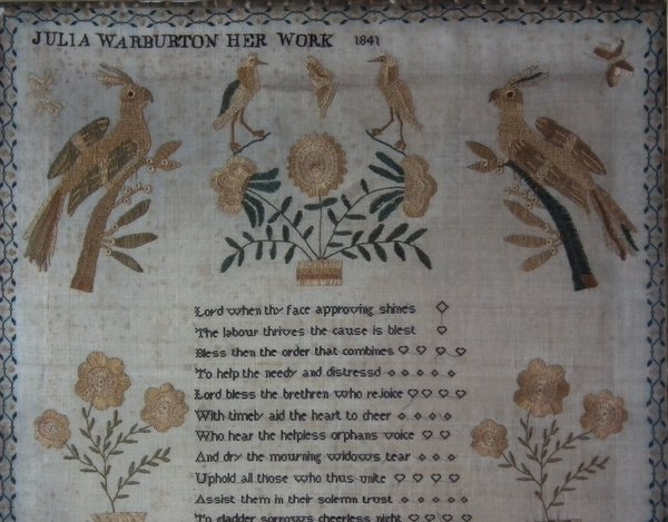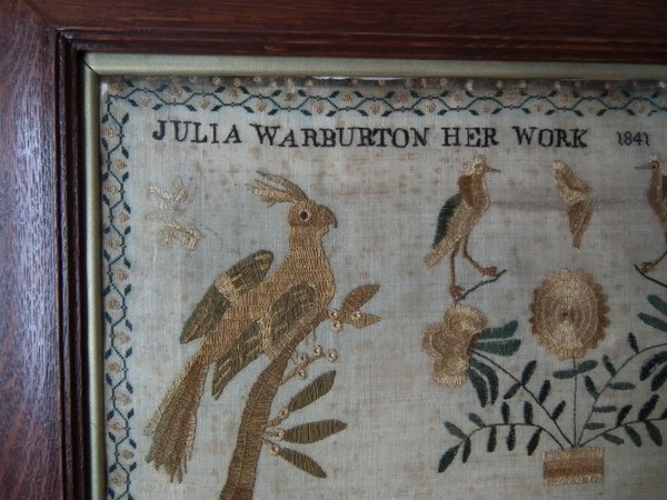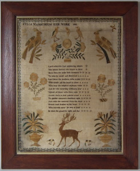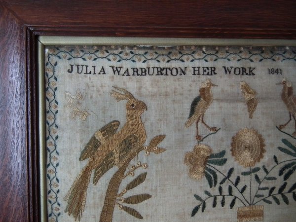 Victorian, dated 1841. 25.5ins high by 20ins wide. 1841 Sampler by Julia Warburton.