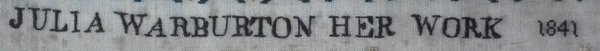 'JULIA WARBURTON HER WORK 1841'.