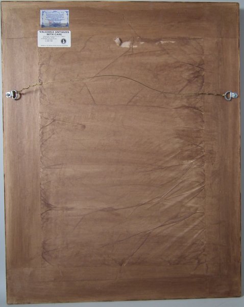 Fixed to linen with wood backing.