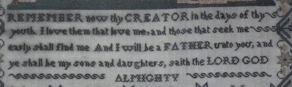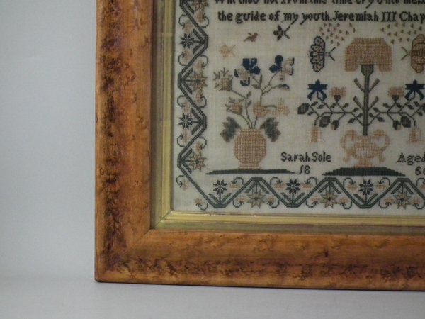Victorian, dated 1856. 17.75ins by 13ins wide. 1856 Sampler by Sarah Soul.