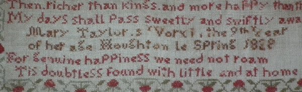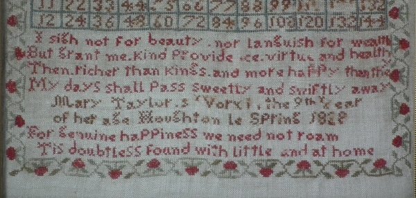Signed and dated, 'Mary Taylors Work the 9th Year of her age Houghton le Spring 1838'.