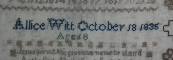 Signed and dated 'Allice Witt October 18 1835 Aged 8'.