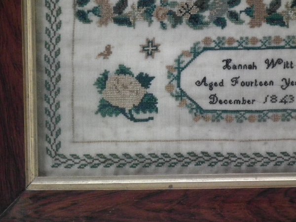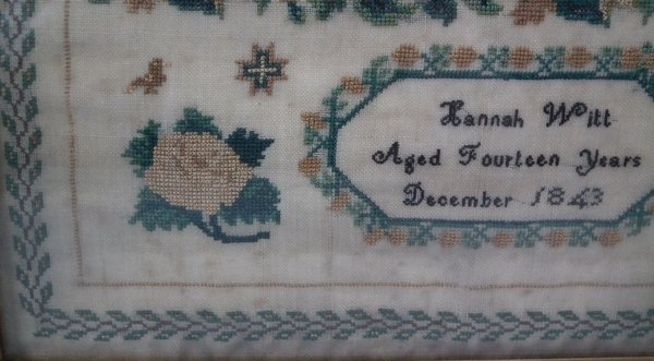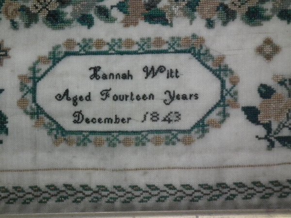 Signed and dated Hannah Witt Aged fourteen Years December 1843'.