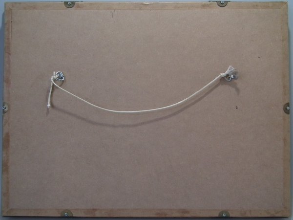 A few patchy stains. Colours are slightly faded, but still well defined. Unevenly stretched.