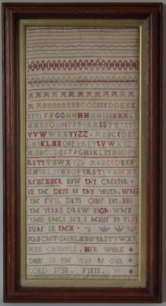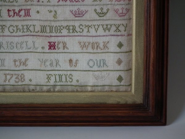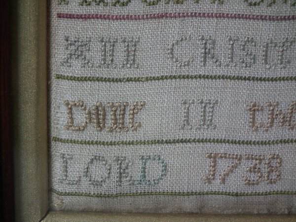 'Ann CRisteLL HeR WoRk Done in the yeaR of ouR LORD 1738 Finis'.